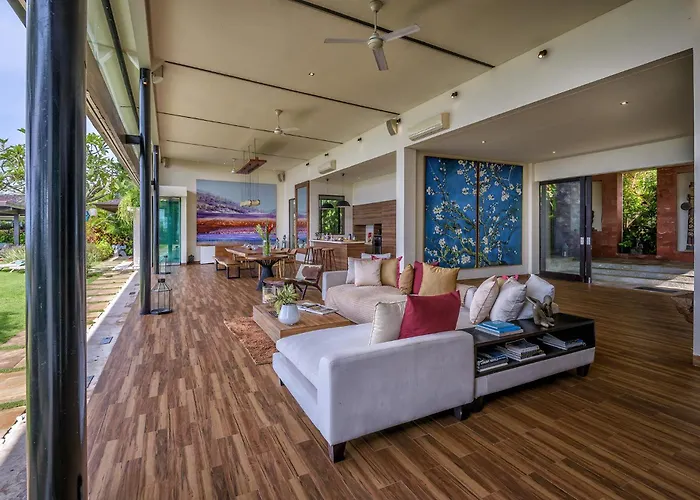 This accommodation for 12 guests is placed next to @ Timbis Launch Area # Paragliding Site In Bali. It is 3.9 miles from the center of Nusa Dua. The villa is about 5 minutes' walk from Pandawa Breeze serving Indonesian dishes. The property is next to Puja Mandala worship complex Spiritist Center.